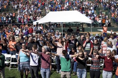 Celebrate holds a 911 service at the Sioux Falls Canaries Stadium.