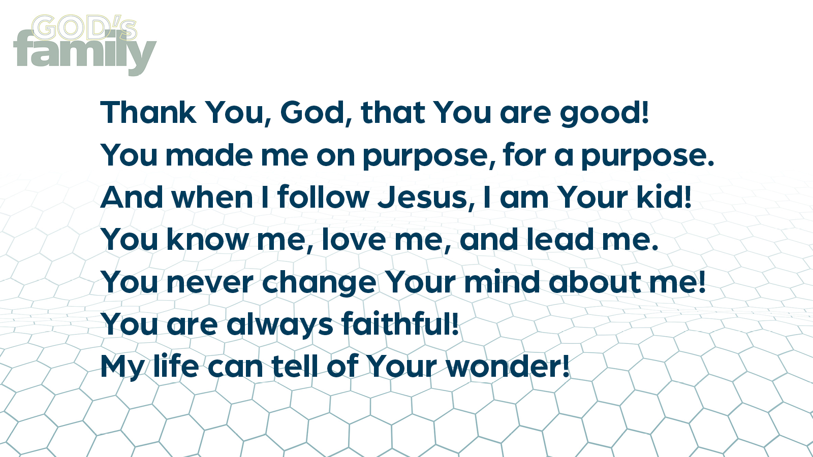 We can’t wait to meet your family! At your first check-in, please look for the "New Families" banner and a team member will love to assist you. We will collect names, ages, phone number, etc. Then, your child may attend immediately. You do not need to attend the same service time every week, although attending the same service time does aid in the child building relationships with our teams.